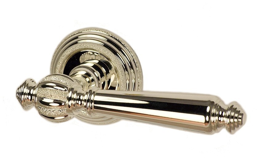 Дверная ручка на круглой розетке "MICHELLE", 186/370 R SILVER PAVE, материал Латунь, отделка Серебро, 135*56 мм
